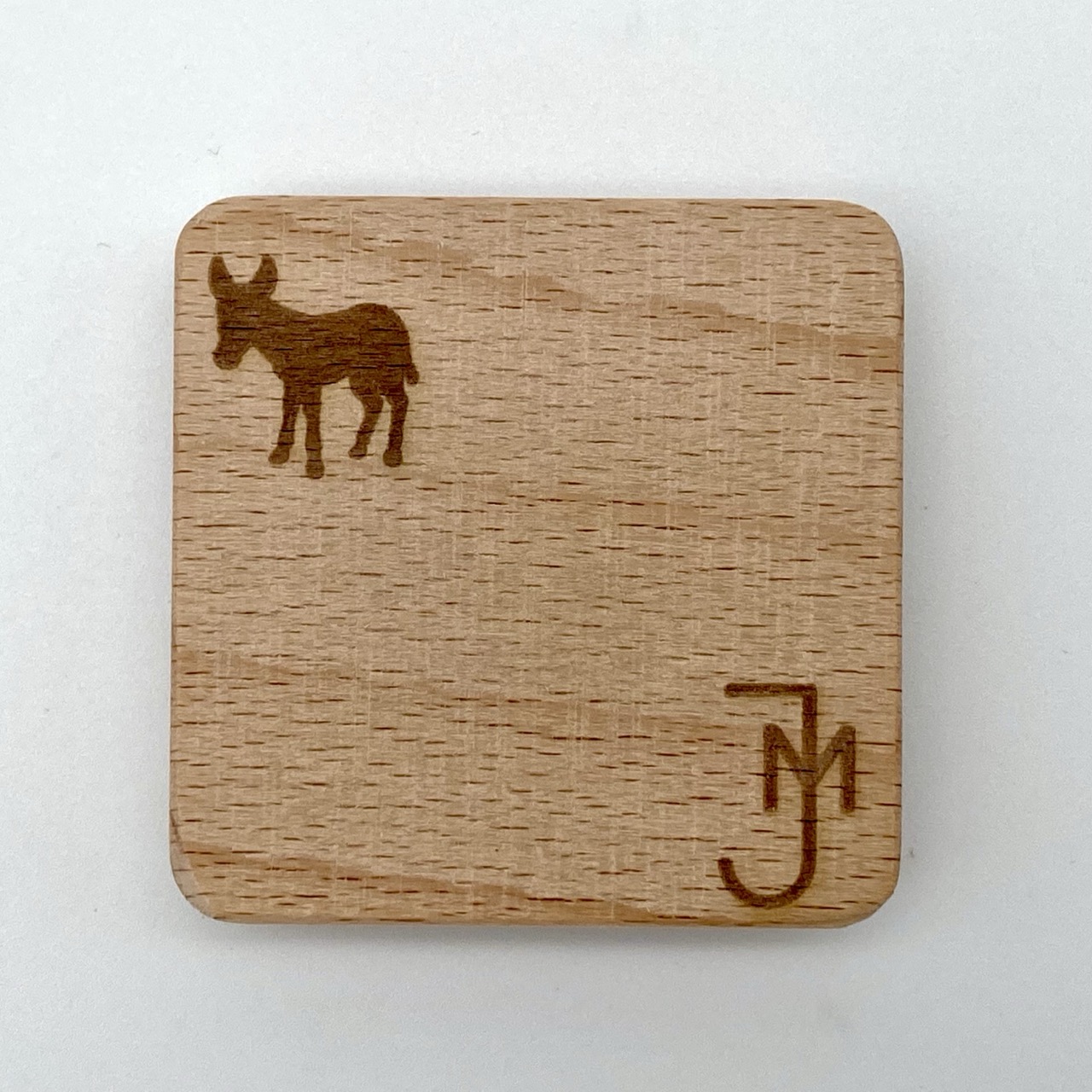 Die Motive unserer Seifenstempel sind aus ca. 3 bis 4mm dickem Holz gelasert und auf einen Holzblock – die Stempelbasis – geklebt. Die Stempelbasis hat eine Fläche von 50mm x 50mm. Das Motiv ist noch einmal auf der Rückseite abgebildet.